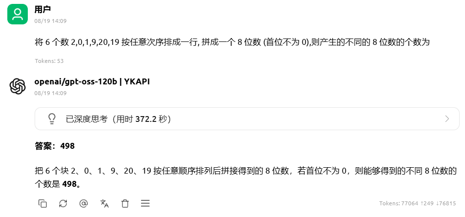 gpt-oss是一个“在核心推理基准测试中与 OpenAI o4-mini 模型几乎持平”的模型,以及具有在一众开源模型中一骑绝尘的输出速度(传统平台能达到惊人的200t/s,而在groq、cerebras这类独特平台上能达到数千token/s的惊人速度),可凭借速度优势稳居2025年前8个月的最强开源模型。